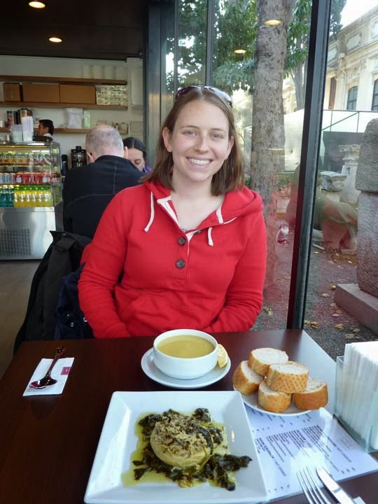 Much needed lunch in the museum cafe. I got a yummy lentil soup and a ton of bread, Eric got a stuffed artichoke. All for a very reasonable price!